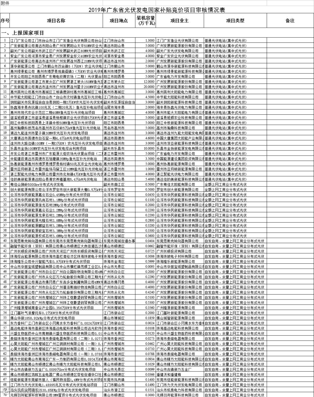 关于2019年广东省光伏发电国家补贴竞价项目审核结果的公示