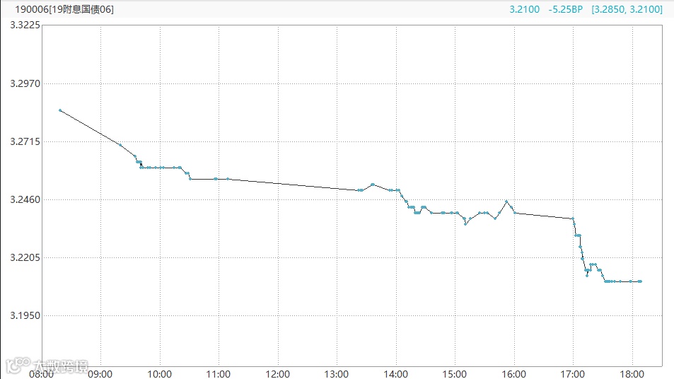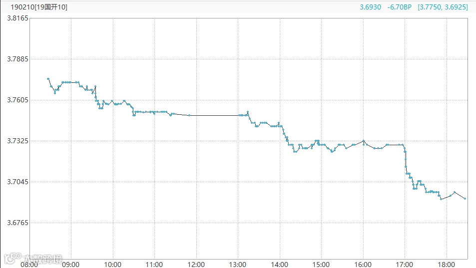 11日,银行间现券收益率加速下行,银行间现券收益率下行5-7个基点,股债跷跷板效应明显。其中,10年期国开活跃券190210收益率下行6.70基点报3.6930%,10年期国债活跃券190006收益率下行5.25基点报3.210%。