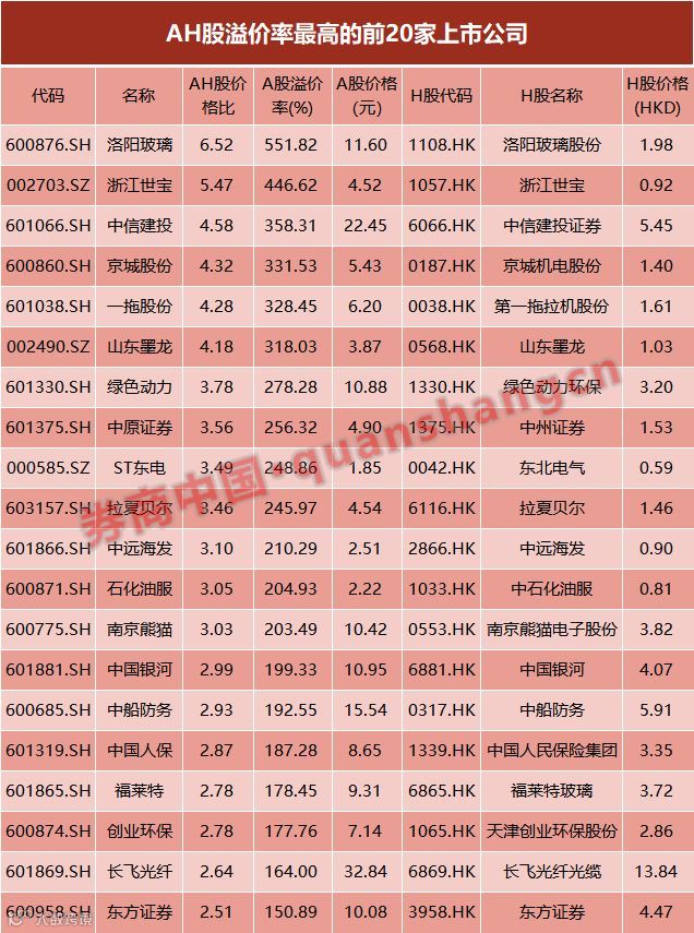 根据wind数据,以11月1日收盘价来计算,中国人保的A股较H股溢价187%,在116家AH两地上市企业中,这一溢价率排在第16位,属于A股较H股溢价比较高的。