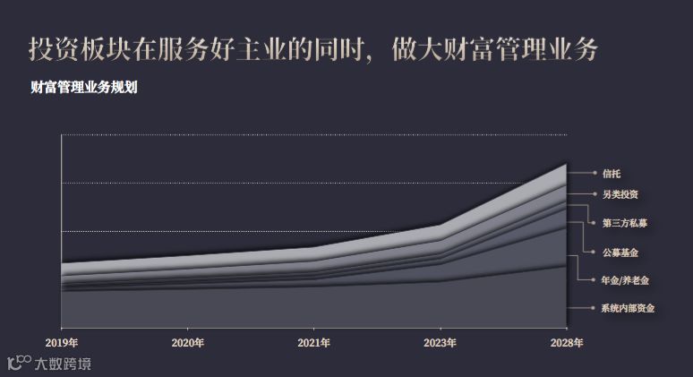 目标是,到2023年,第三方资产管理规模翻一番,第三方资产占比超过50%,利润贡献超过8%;到2028年,第三方资管规模再翻一番,利润贡献超过12% ,把投资板块打造成集团增量利润贡献者。