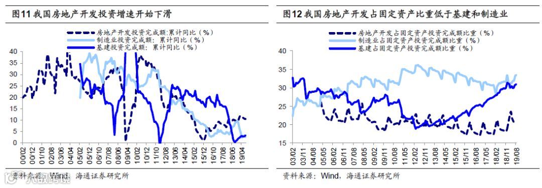 其二,地产链下行会不会拖累总体盈利?我们认为未来地产的影响力将变小,因为适龄购房人数占比下降,城镇化速度放缓,股市中相关行业利润占比中枢已经在下降。从地产销售来看,因城施策使一二线和三四线城市景气错位,地产销售以时间换空间,增速已在磨底。从投资角度看,地产投资增速虽然在回落,但占比更大的基建回升对冲,详见《房地产链对盈利影响渐小-20191017》。