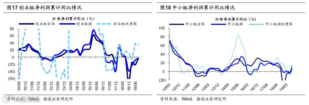 19Q3是本轮盈利的底部,未来盈利回升支撑行情。10月18日统计局公布了19年三季度经济运行数据,整体来看三季度经济数据仍继续回落。三季度GDP同比增速为6.0%,较二季度的6.2%继续回落。较弱的宏观数据让投资者担忧企业盈利,我们预计上市公司净利润同比19Q3见底,2020年回升至10-15%,详见《企业盈利和GDP最终分化——借鉴美国、日本经验-20190819》、《如何预测跟踪盈利趋势?-20190919》。