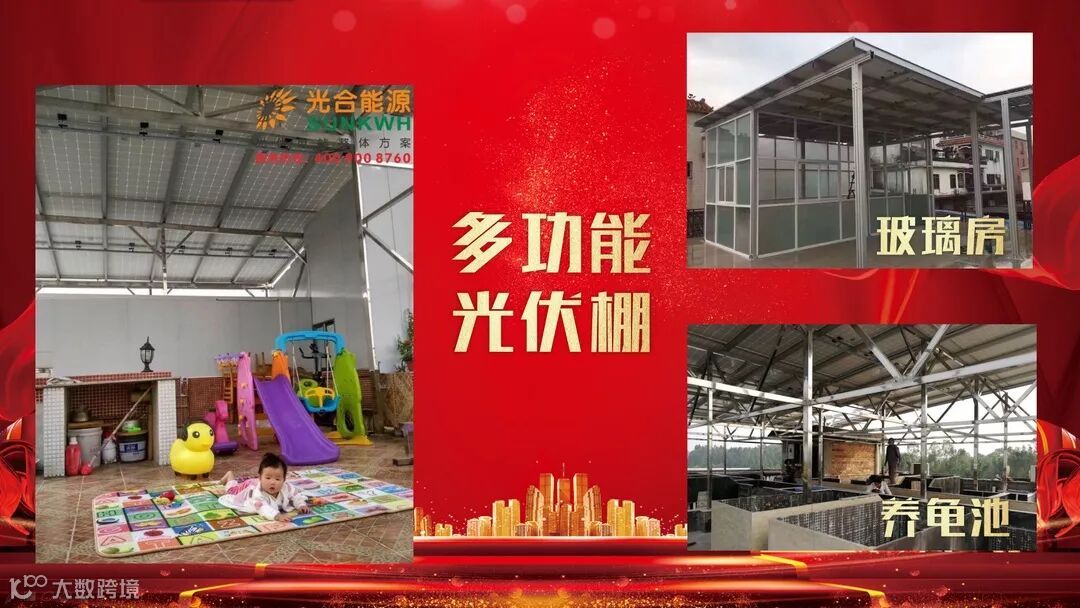 随着大家对生活质量的提高,光伏电站不再是单纯发电的作用,已提升为一个多功能光伏棚,儿童乐园、龟池,玻璃房等等,成为大家又一休闲空间。