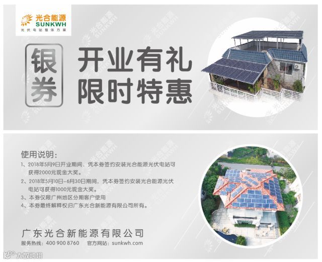 开业当然要大酬宾,光合能源给礼又给利,开业当天到场并达成意向者即获赠精美礼品一份,现场签约更可获得现金大奖,另外凡在2018年5月10-6月30日安装光合能源光伏电站用户均可获得现金大奖,详情见下图。