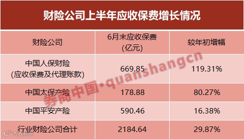 包括寿险等综合业务的中国人保集团和中国太保集团,应收保费则在上半年都有超过100%的增长,二者分别较年初增长了134.7%、126.6%。