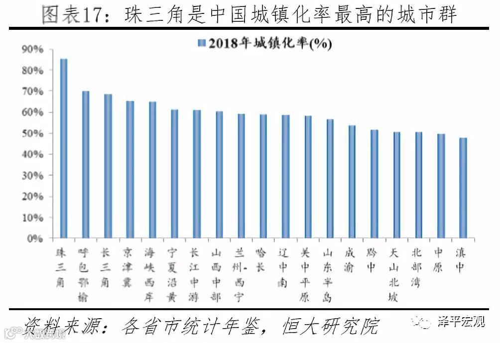 2018年珠三角城市群人均GDP达12.9万元、居中国五大城市群首位,城镇化率85.3%、中国最高,将与港澳“拼船出海”,打造国际一流湾区和世界级城市群。