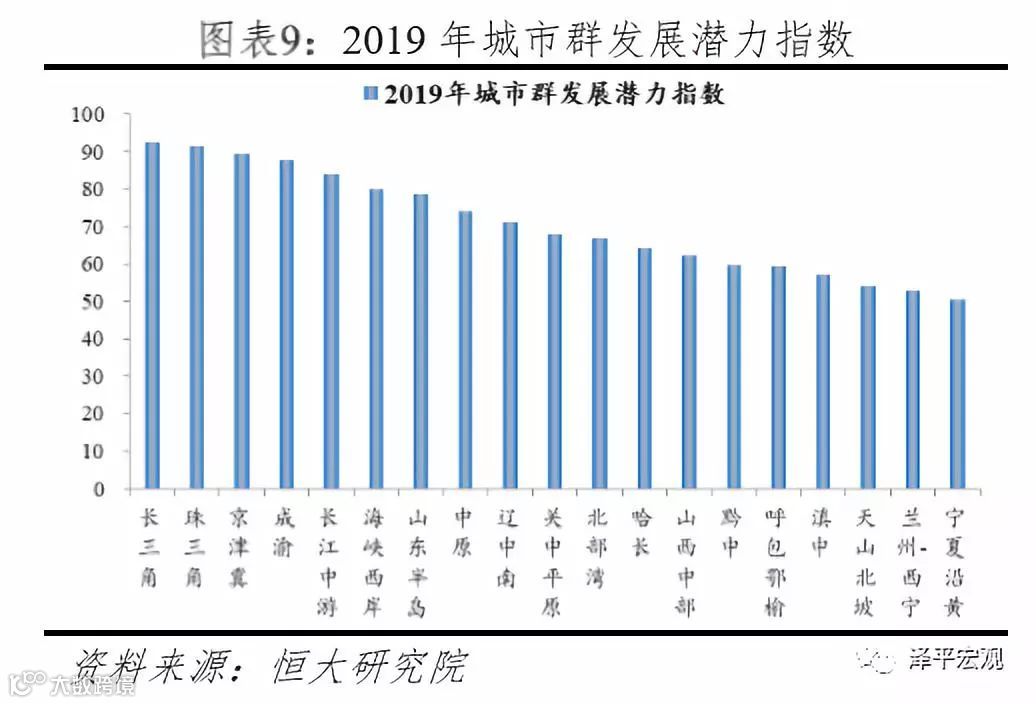 在2019年4月报告《中国城市发展潜力排名:2019》中,我们从“基本面+市场面”两个层面分27个指标研究2019年中国336个地级行政单位发展潜力(不含三沙),具体以基本面研判城市中长期发展潜力,以市场面辅助择时。城市群是高度一体化和同城化的城市集群,我们继续从“基本面+市场面”两个层面分27个指标研究2019年中国19个城市群发展潜力。长三角、珠三角、京津冀、成渝、长江中游发展潜力居前,之后是海峡西岸、山东半岛、中原、辽中南、关中平原、北部湾等。