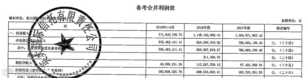 英大信托注册资本为40.29亿元。根据最新的审计报告,今年上半年,英大信托实现营业收入7.72亿元,其中托管及其他受托业务佣金净收入为5.30亿元;净利润5.23亿元。