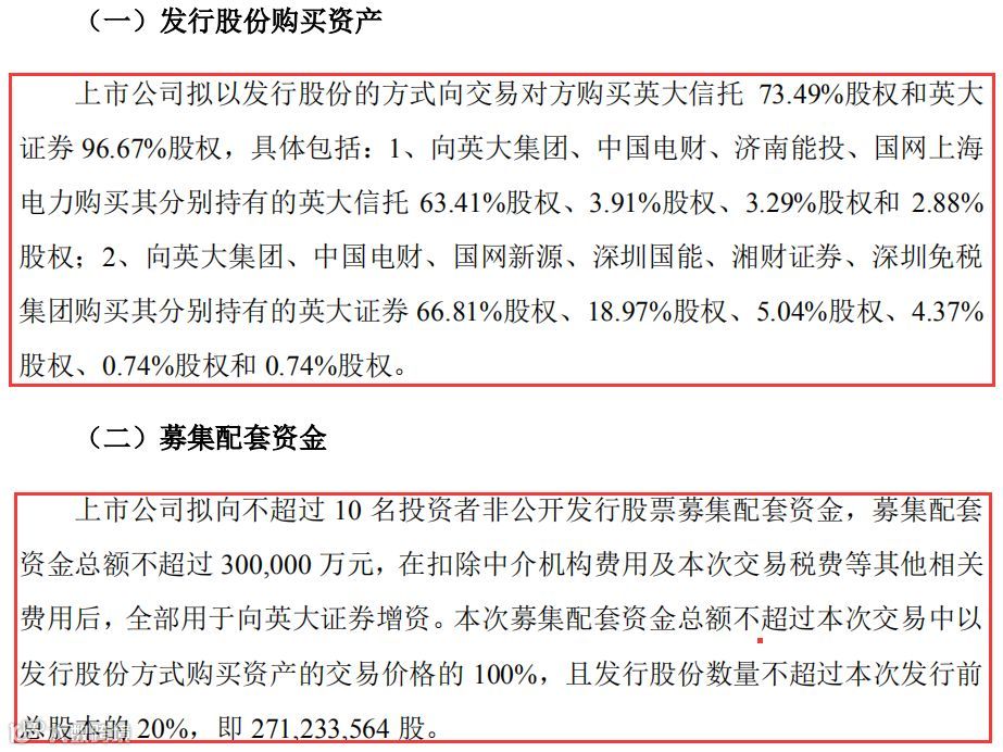 公告显示,置信电气拟以发行股份的方式,向交易对方购买英大信托73.49%股权和英大证券96.67%股权。具体包括: