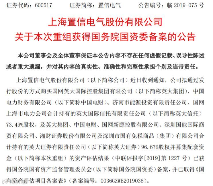 定了!国家电网系资本腾挪方案确定,英大证券、英大信托以140亿作价双双并入置信电气上市资产。