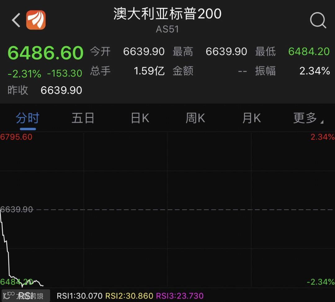 澳大利亚股市跌势亦较大。