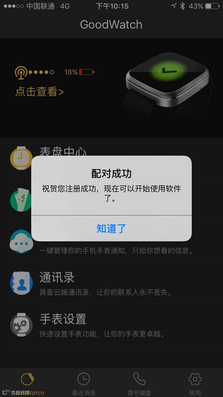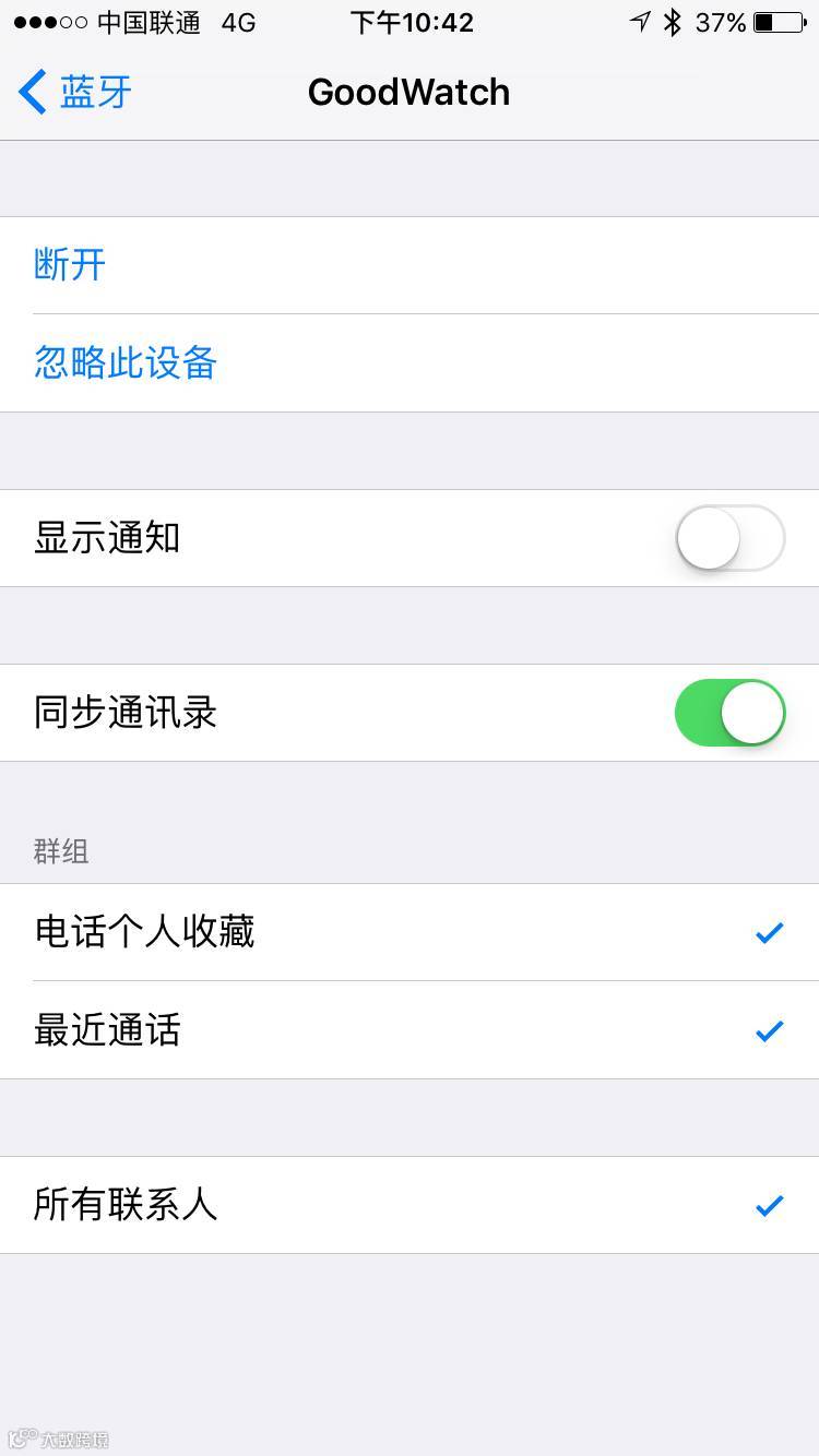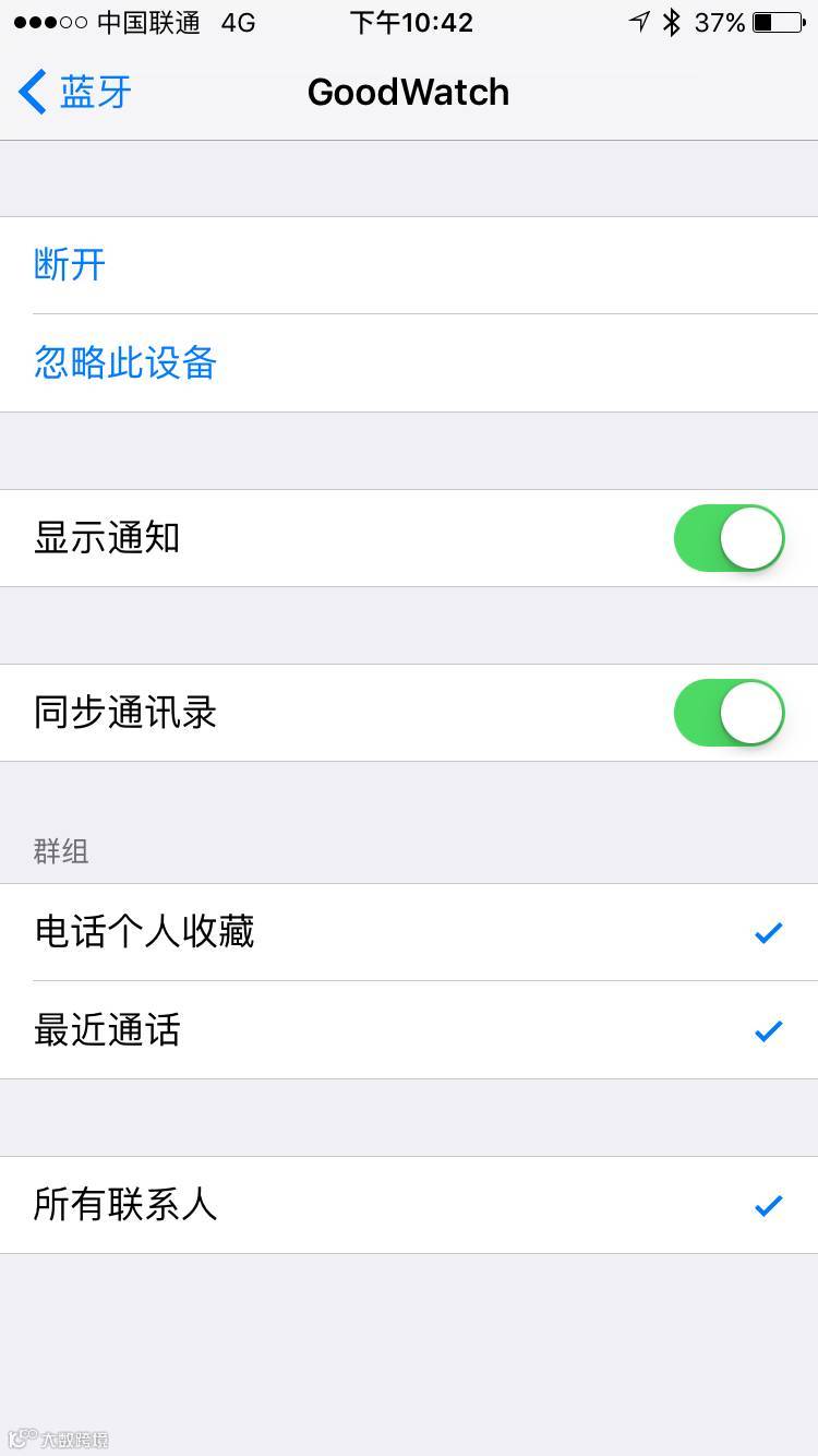 连接上后,点击其中一个“GoodWatch",您将看到如下页面,表示您的手机来电可以在手表接听了。但信息仍然不行,您必须把“显示通知”勾选上。