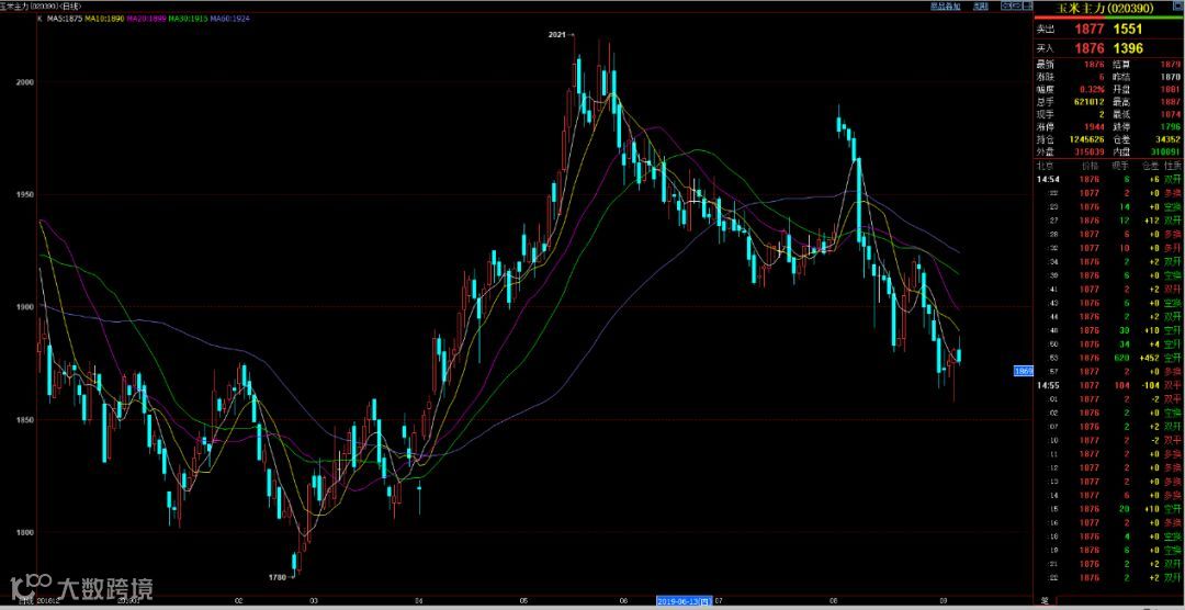 尽管各界一致看好,但是受猪瘟养殖疫情影响,至2019年7月,全国扑杀生猪116万余头,因此占玉米消费60%以上的饲料消费迟迟不见起色,同时猪瘟对猪肉价格的影响还在持续发酵,而玉米则随着新玉米上市日期的临近,开启了一波幅度较大的下跌行情。
