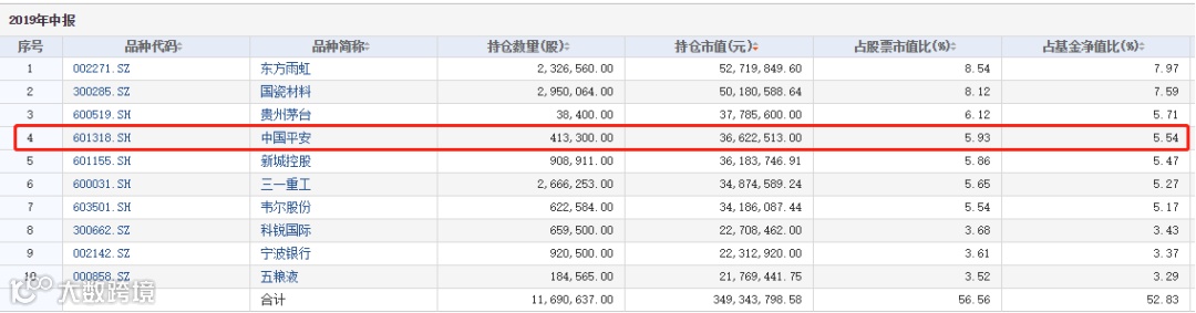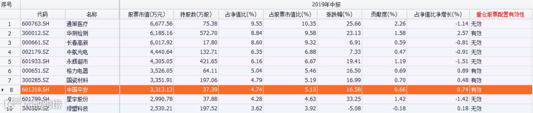 在富国高端制造行业股票基金2019年中报披露的十大持仓中,中国平安占其股票市值比5.93,为其第四大重仓股,并且,在其十大持仓中,还看到了贵州茅台、宁波银行、五粮液的身影。再翻看其过往的持仓报告,记者发现,该基金已经重仓了中国平安一整个年头!自2018年中报中,十大持仓中出现了中国平安以后,中国平安就没再从该名单上消失过,可谓是一个“用情至深的老司机”!