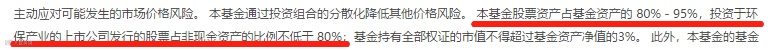在其半年度报告中,其中注明了投资于环保产业的上市公司发行的股票占非现金资产的比例不低于80%。根据前十大持仓来看,除去中国平安之外,其它持仓主要为新能源行业的股票,也能算作环保产业,所以,目前来看,基金尚未“漂出赛道之外。”