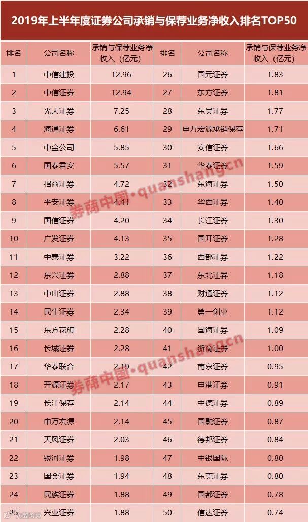就承销与保荐业务而言,中信建投证券和中信证券也是仅有的2家该项业务净收入超过10亿元的券商,分别为12.96亿元和12.94亿元。