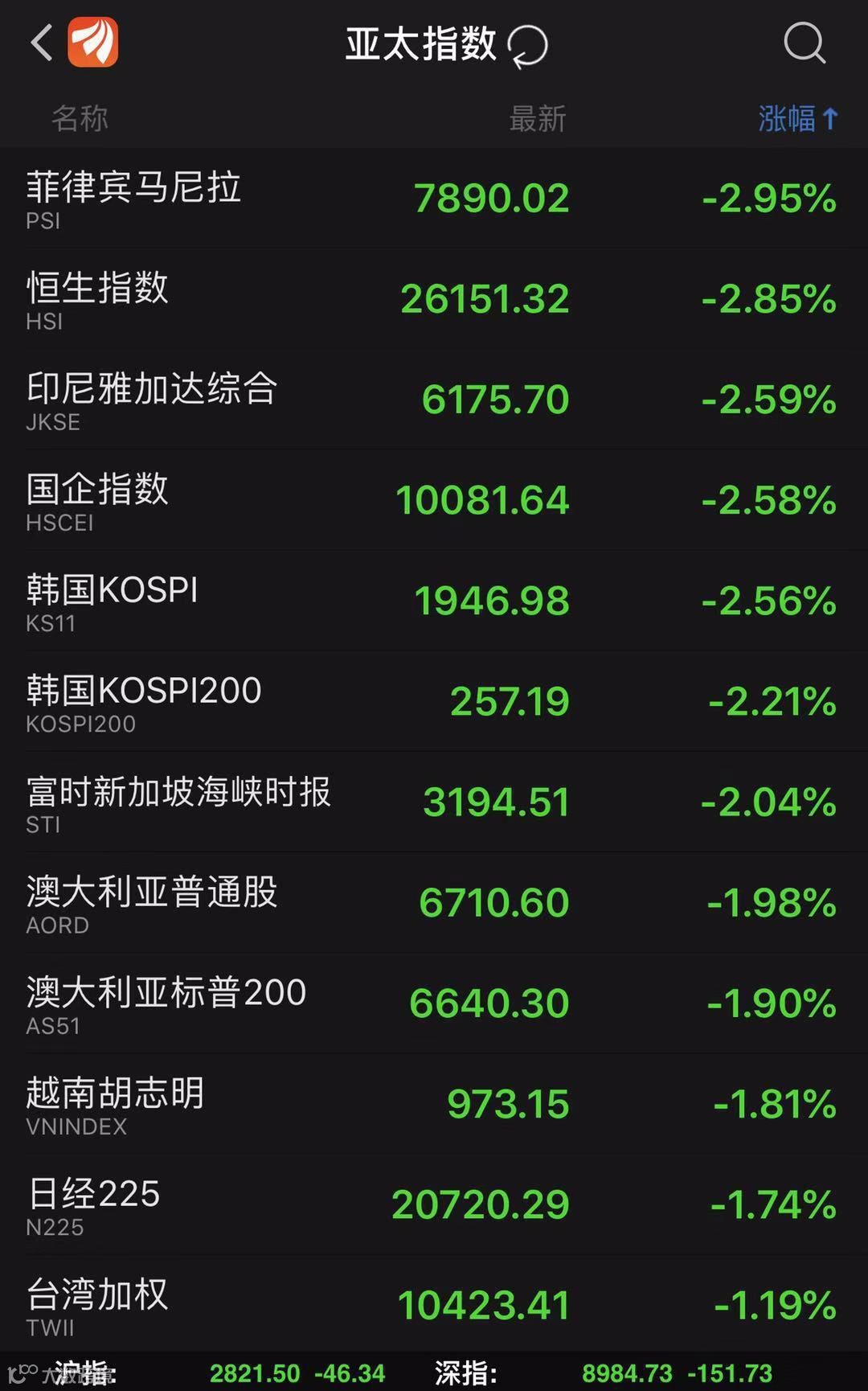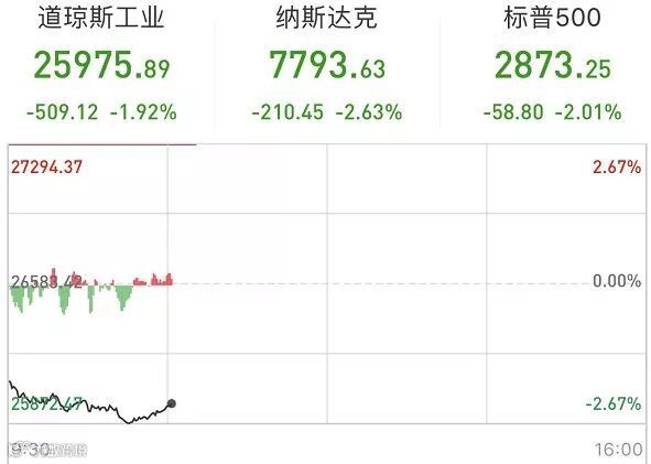 美股全线大幅低开,纳指跌超2%,标普500指数跌1.6%,道指跌近400点。中概股几乎全线下跌,阿里巴巴跌近4%,京东跌超5%。苹果低开超3%,市值跌破9000亿美元。搜狐跌超10%,第二季度收入不及预期。随后,指数低开低走,道指最多时跌幅超过600点,而纳指跌幅则超过3%。