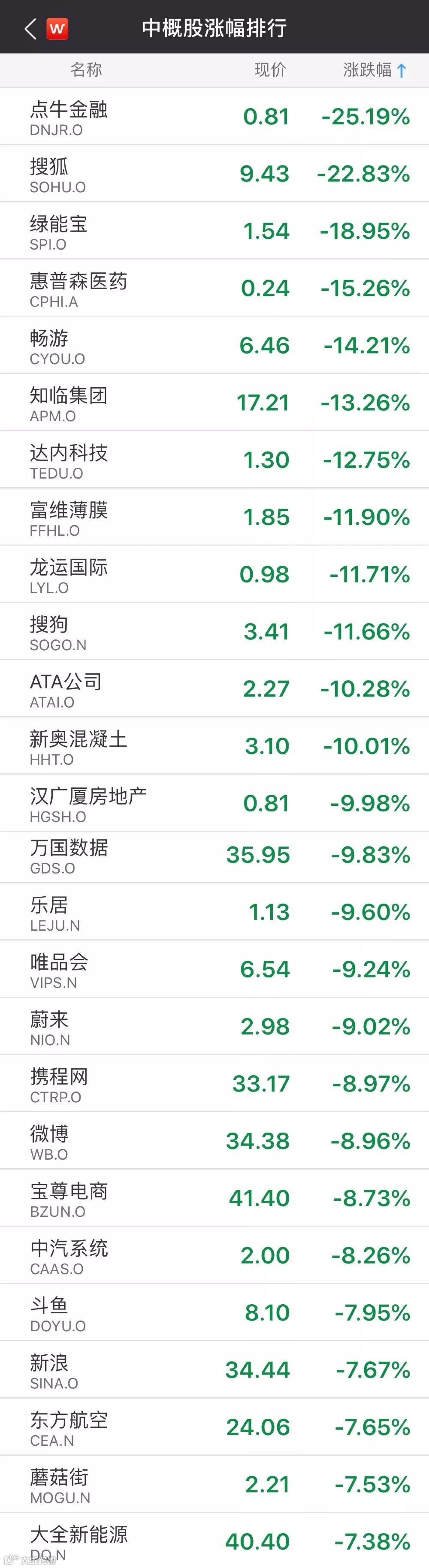 中概股更是损失惨重。行盘至北京时间十点多钟的时候,阿里巴巴跌3.07%,京东跌5.64%,百度跌5.65%;搜狐大跌逾20%,搜狗跌超9%,蘑菇街跌近9%,唯品会跌8.33%,微博跌5.85%,拼多多跌5.38%,蔚来汽车跌6.88%,网易跌2.76%。其中搜狐业绩不达预期。