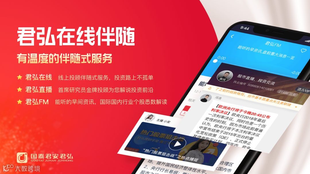 未来,君弘APP将继续依靠科技推动,实践数字化的财富管理之路,以强大的金融科技作为支持,为君弘APP上超过3200万用户提供更加专业、极致、有温度的个性化综合金融服务。
