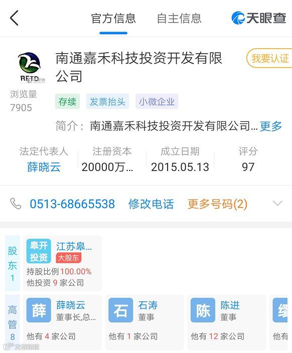天眼查数据显示,南通嘉禾科技投资开发有限公司注册资本2亿元,为江苏皋开投资发展集团有限公司全资子公司,实际控制人为如皋市政府。