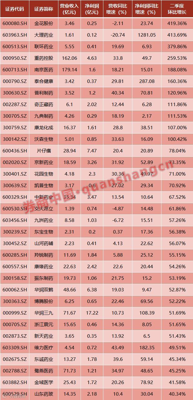上述这些公司如果在三季度和四季度净利仍能保持良好增长,对医药板块上涨的持续性有较大的正向作用。