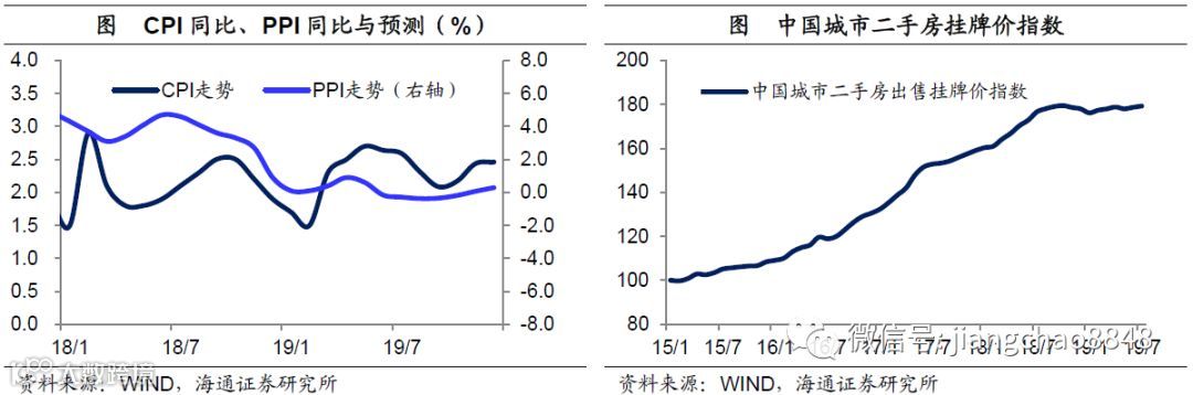 通胀趋势回落,二手房价止涨。而不搞货币刺激的好处是,在货币增速回落之后,通胀预期和地产泡沫都得到了有效的控制。19年初以来,猪肉、水果价格的上涨引发了对通胀的担忧。但由于缺乏货币增速的大幅上升,意味着没有需求端的支持。从工业品价格来看,近期油价、铜价、煤价大幅下跌,意味着工业通缩风险大于通胀风险,我们预计全年CPI在2.4%左右,4季度通胀有望明显回落。而中国城市二手房挂牌价指数显示,经过3年上涨之后,19年以来的二手房房价已经止涨回稳。