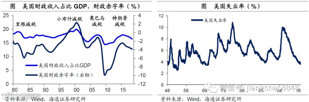 减税延长经济繁荣。但问题是,如何帮助美国经济的弱者?其实最简单的办法就是劫富济贫,通过税收制度来平抑贫富差距。但是特朗普本身是个超级富豪,劫富济贫就是从自己身上割肉,这在逻辑上是不可能的。因此,特朗普首先选择了短期刺激政策,尽可能做大蛋糕。其上任之后出台了万亿美元规模的减税计划,其实不仅给穷人减税,而且更多的是给富人减税,因为富人的边际税率降得更多。而得益于大规模减税,美国经济在过去两年继续复苏,其失业率也创下了近50年的最低值。