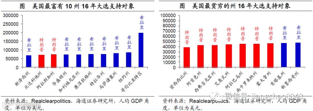 落后可以决定领先。从16年大选结果来看,支持希拉里的几乎都是高收入的地区,而特朗普的支持者恰好跟希拉里完全相反。美国人均GDP排前10名的州里面,有8个支持希拉里,而人均GDP排后10名的州里面,有8个支持特朗普。如果全靠市场竞争,东部和西部会越来越发达,而中部人会越来越少。但是美国的选举制度则给弱者留下了一张选票王牌,而特朗普则是靠这张王牌成功上位。
