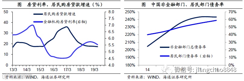 降息刺激加杠杆。为何降息之后的社会融资成本反而有所上升?原因在于,经济并非是一个静态不变的系统,而是一个动态变化的过程。在2015年大幅降息之后,由于利率大幅下降,刺激居民部门大幅举债买房,这使得中国全社会的债务率再度上升。在15、16两年间,中国居民部门债务率从40%上升至50%,并推动中国全社会债务率从204%升至236%。由于债务融资需求的大幅上升,刺激贷款利率重新回升。