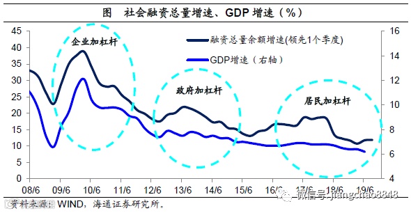 08年以后:三次举债加杠杆。而金融业的大发展,则与金融危机之后举债发展的模式有关。自从08年开始,中国曾经加过三次杠杆,举债主体分别是企业部门、政府部门和居民部门,而每一次加杠杆,都伴随着货币高增,以及金融业的大发展。