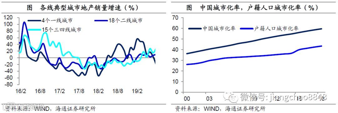 城市化仍在推进,地产不会失速。对于房地产市场而言,我们认为由于城市化还在继续推进,尤其是中国户籍人口城市化率较低,因而地产市场需求不会出现断崖式下降,仍有望保持平稳走势。
