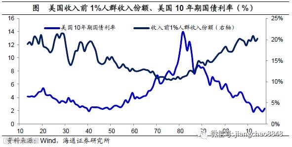 利率下降或加剧贫富差距。而大幅降息的另一个副作用是贫富差距扩大。在美国的80年代以后,其贫富差距持续扩大,收入前1%人群的收入份额持续提高,或与利率的持续下行有关。原因在于利率下行推高了金融资产价格,而富人占有了大量金融资产,因而贫富差距会趋于扩大。这意味着降息未必能大幅增加消费,因为穷人的消费倾向高,但是缺乏金融资产,无法受益于降息。