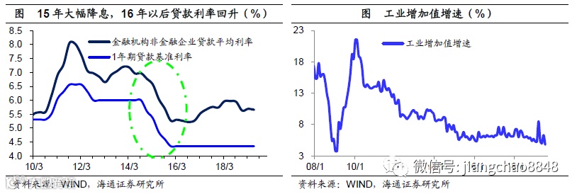 工业增速新低,降息呼声再起。由于实体经济负债高企,一个自然而然的想法就是降低利率水平,让金融行业反哺实体,给企业减负。尤其是在8月份以来,一方面美联储开始降息周期,海外降息不断,利率迭创新低;另一方面7月经济下滑,工业增速创新低,因而在国内也出现了降息的呼声,并一度引发了央行的辟谣。为何央行对降息如此谨慎,因为就在2015年,央行曾经在1年之内5次降息,给出的理由就是降低社会融资成本,然而从2016年以后,中国的社会融资成本又重新开始上升。