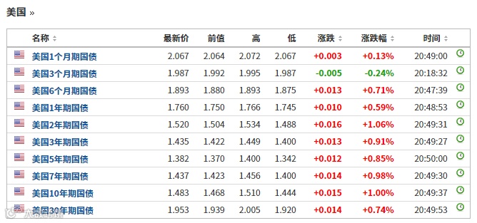 连日来,一直处于上涨态势中的美国各期限国债亦出现了回调的情况,导致其收益率纷纷上扬。