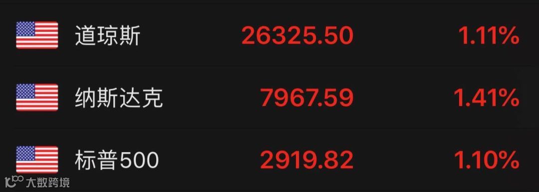 美国股市盘前的期指就已经大幅反弹,开盘后美股亦出现了冲高的行情,三大指数涨幅都超过1%。