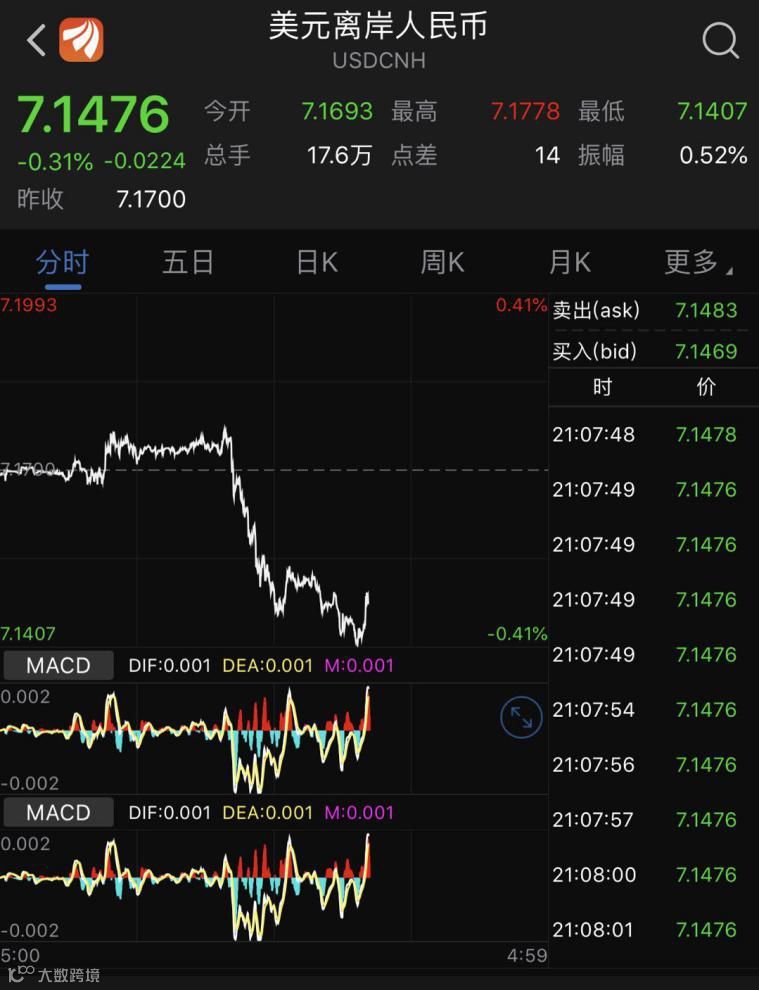 首先,从离岸人民币走势来看,单日已经反弹了300个基点。