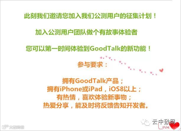 加入我们的公测用户团队,您可以在第一时间体验我们产品的新功能,并发表您最有权威的意见和建议!您有机会成为我们下一代新品的首发体验者!同时您还有机会获得我们为您送出的精美礼品!