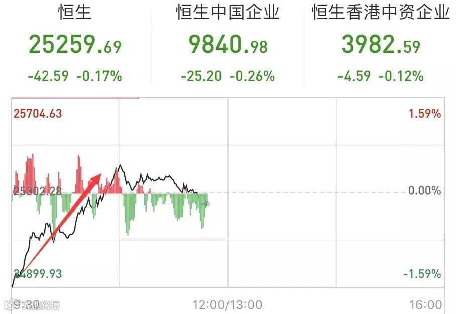 市场还呈现出另一个更美的画面。香港恒生指数早盘即快速反弹,并率先翻红。