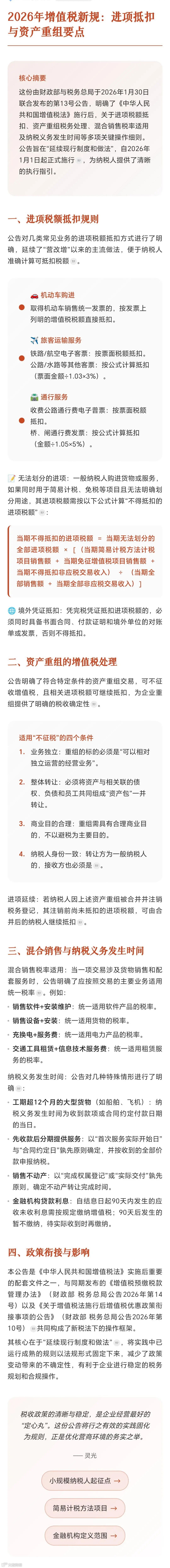 《财政部 税务总局关于增值税进项税额抵扣等有关事项的公告》2026年第13号 启道财智
