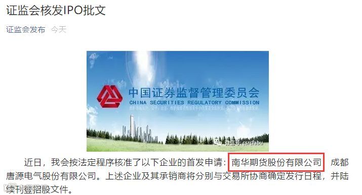 8月9日,中国证监会核发两家企业的首发申请,南华期货赫然在列、拿到IPO批文,这意味着期货公司距离正式登陆A股已经越来越近。