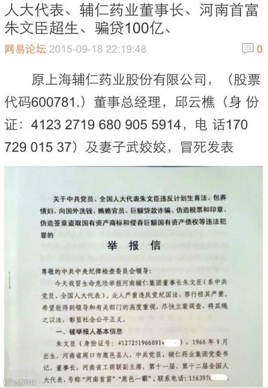 举报信发出之后,朱文臣表示,这是“胡说八道”。
