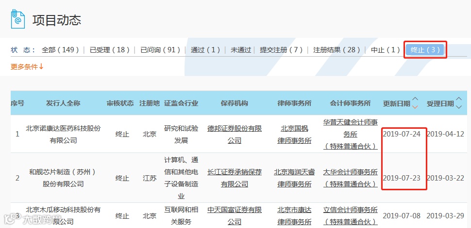 7月24日,上交所科创板项目动态版块显示,诺康达的审核状态变更为“终止”。与木瓜科技和和舰芯片不同,诺康达仅在5月8日进行了一轮问询回复,此后再无其他信息披露。