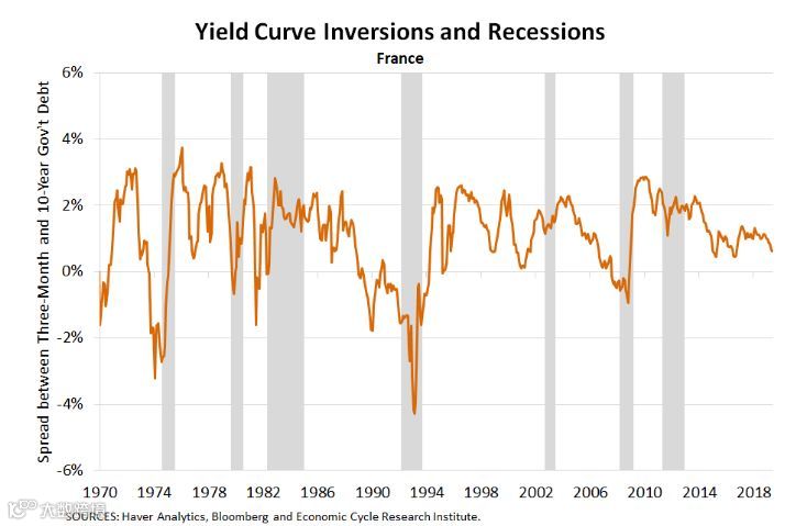 从以上包括美国在内的6个主要西方经济体数据来看,收益率曲线倒挂趋势总体趋向明显,市场对于全球经济见顶回落,未来步入衰退的预期显著加强。当然,需要提醒的是,期限利差倒挂与经济衰退并不是单向的关系,而是相互影响;没有长时间的期限利差倒 挂,很难产生持久的经济衰退;而反之,没有持久的经济衰退,期限利差倒挂也很可能只是昙花一现。