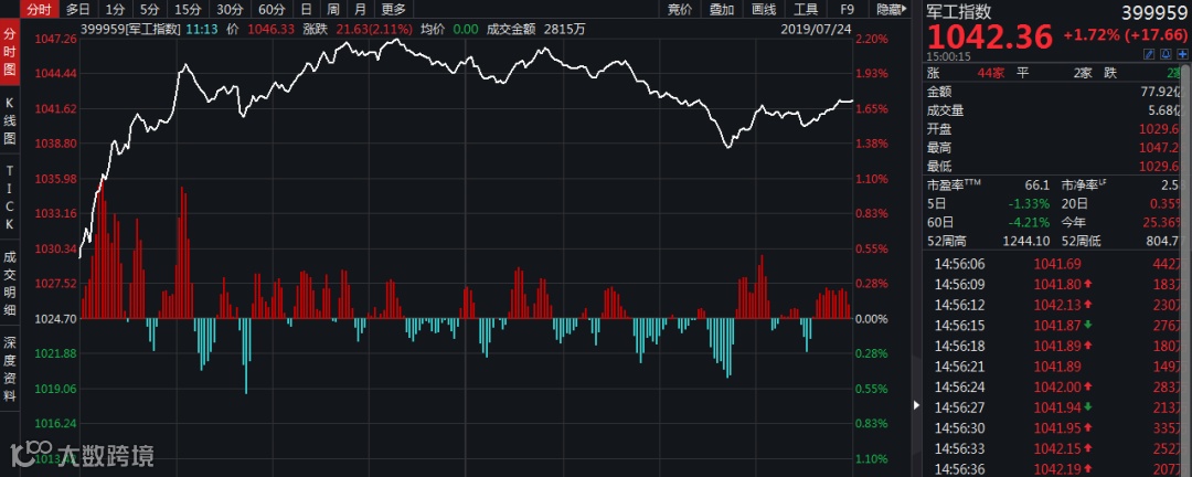 白皮书发布之后,军工板块应声而动。Wind军工指数全天上涨1.72%,日内最高涨幅超过2%。