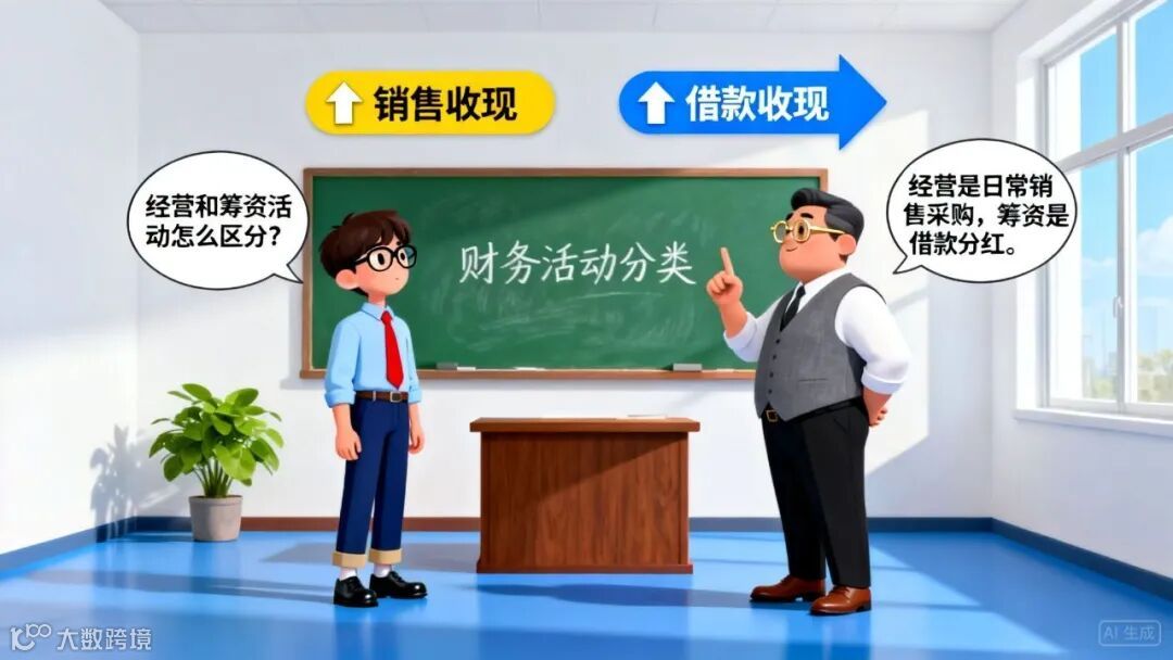 经营活动 vs 筹资活动:偿还应付账款(经营)vs 偿还长期借款(筹资);支付股利(筹资)vs 支付职工薪酬(经营)。