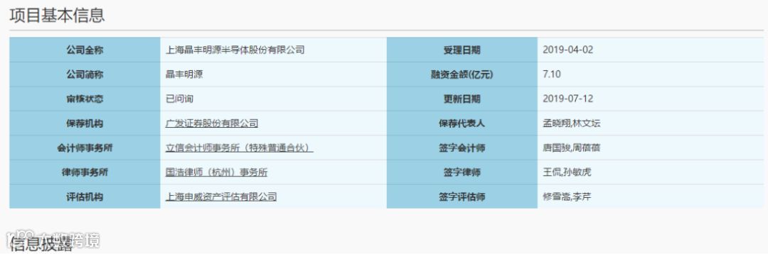晶丰明源的保荐机构为广发证券,会计师事务所是立信,律所是国浩。