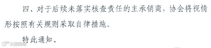 四是,对于后续未落实核查责任的主承销商,协会将视情形按照有关规则采取自律措施。