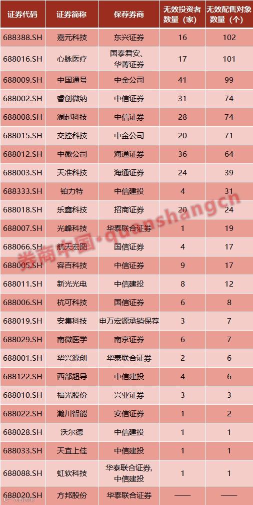 而从结果来看,因资格无效而导致报价无效剔除的情况大有人在。券商中国记者根据25家科创板上市企业上市发行公告不完全统计,仅有方邦股份称“不存在无效报价情形”,其余公司均识别出无效配售对象,合计数量近800个。
