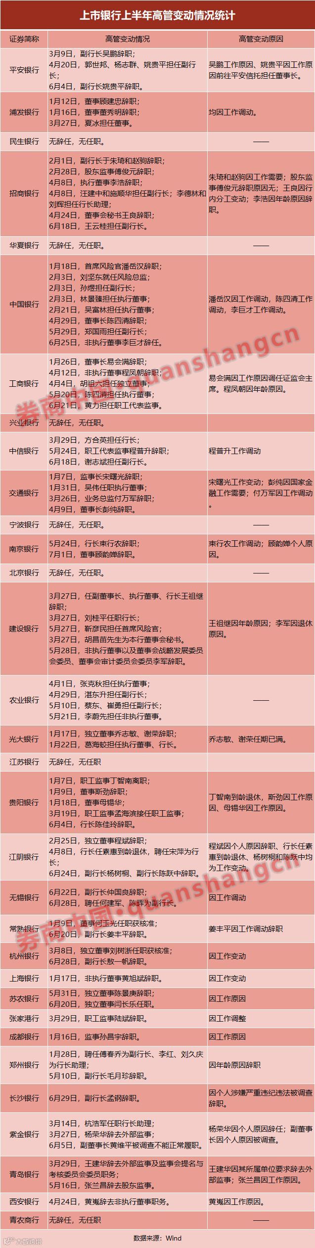 尽管高管变动已经寻常,但是上半年A股上市银行高管的变动的密集当属罕见,尤其是银行董事长或行长正职的变动。