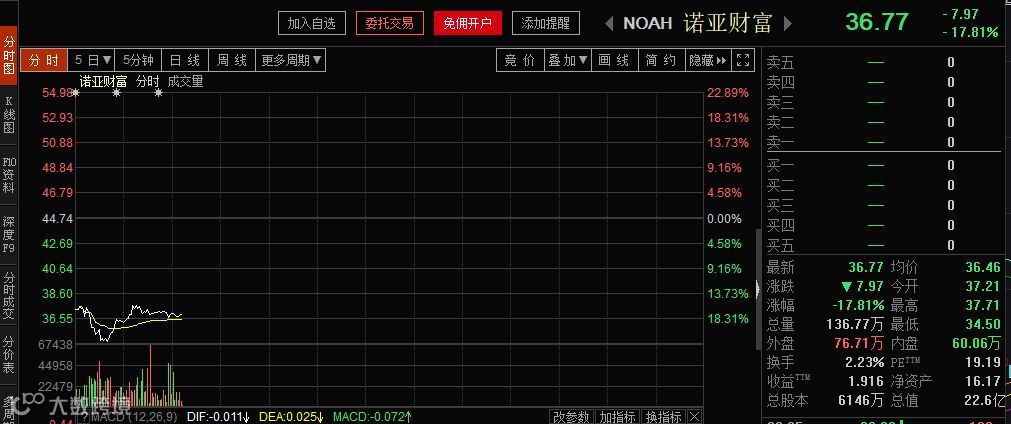 受此影响,诺亚股价开盘后大跌,最大跌幅超过22%。
